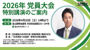 まず代表の柴田巧が基調スピーチ、続いて幹事長の浅岡弘彦富山1区支部長と柴田巧代表の対談、そして参加者の皆さんと意見交換を行いました。このタウンミーティングは、維新の政治姿勢や基本政策を少しでもご理解いただこうと先月から同 […]